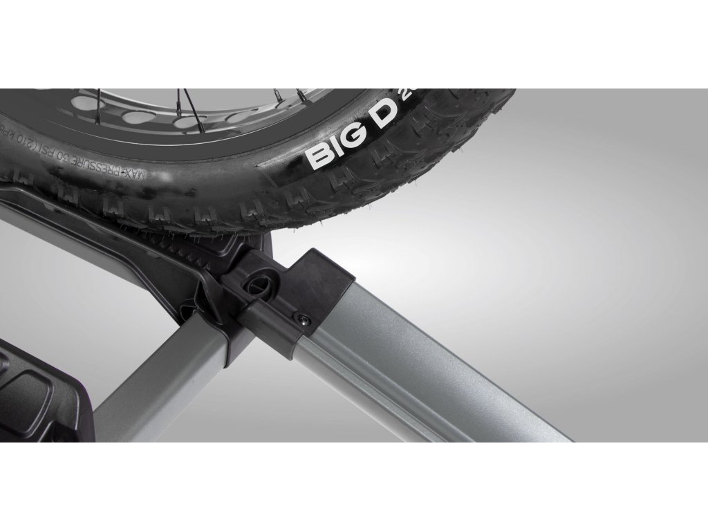 Dlouhé pogumované popruhy drží pneumatiky široké až 4”; potažením je utáhnete a pomocí rychloupínače uvolníte.