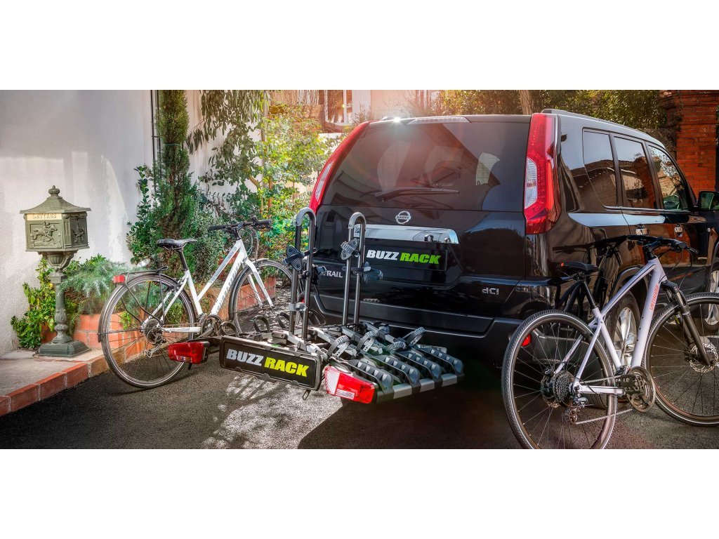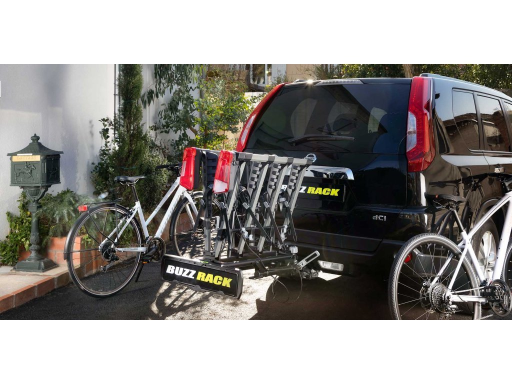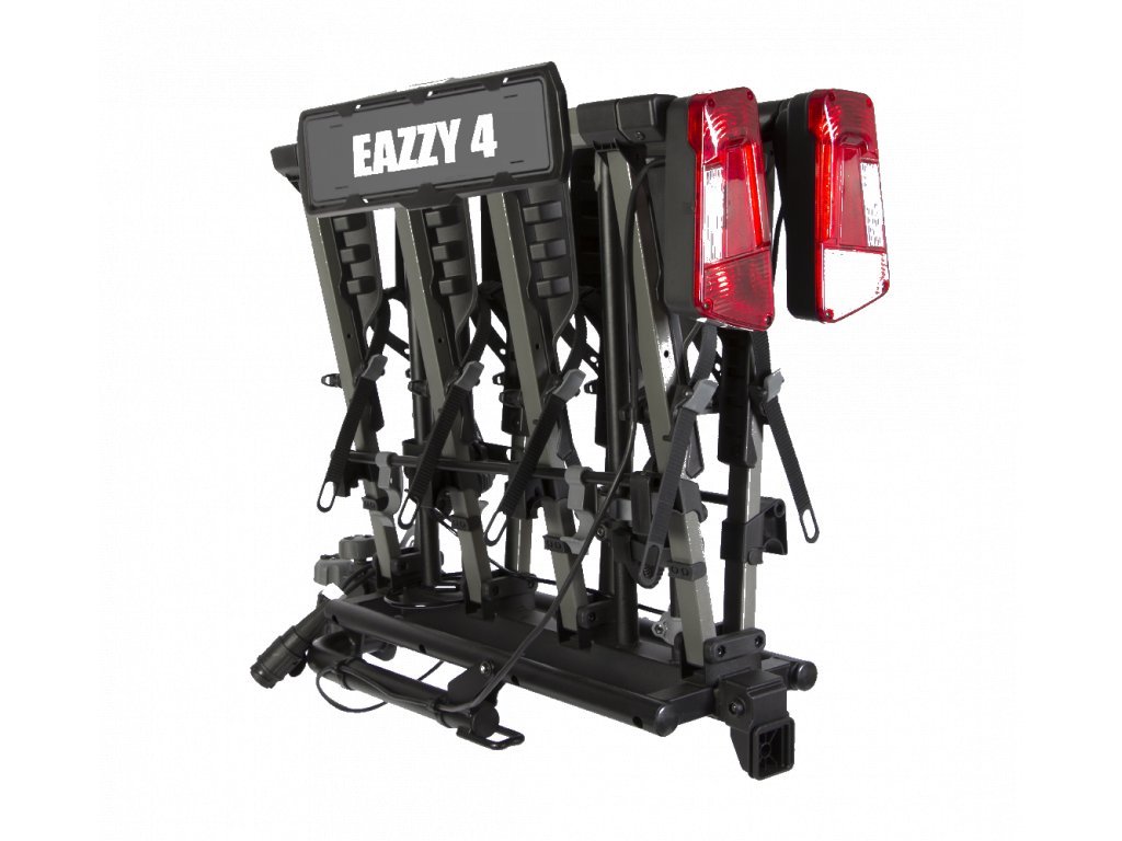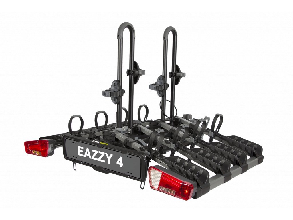 BUZZ EAZZY 4 je určen pro přepravu 4 kol. Spolehlivý nosič na tažné zařízení se stylovým designem za přijatelnou cenu. Je vybaven plnou světelnou rampou s 13PIN zástrčkou. Namontujete jej na jakékoli tažné zařízení a poskytuje nosnost až 60kg, přičemž maximální hmotnost jednoho kola je 20kg. Pokud nosič nepoužíváte, lze jej poskládat do kompaktních rozměrů.