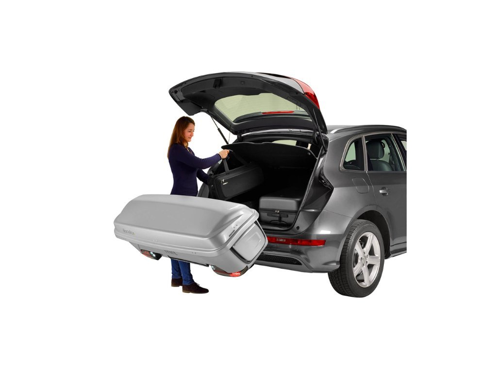 Objem nejméně 300 litrů umožní přepravu např. bagu s golfovými holemi, potápěčského vybavení, nafukovacího člunu a dalšího vybavení pro trávení volného času celé rodiny. Nosič s boxem Euro-Select lze použít také na vozidla s velmi rozměrnými pátými dveřmi - např. VW Transporter T4 a T5 nebo Mercedes Viano. Tento box je z velmi pevného materiálu, vysoce odolný vůči poškrábání. Součástí boxu jsou moderní plně LED diodové svítilny s nízkou spotřebou energie.