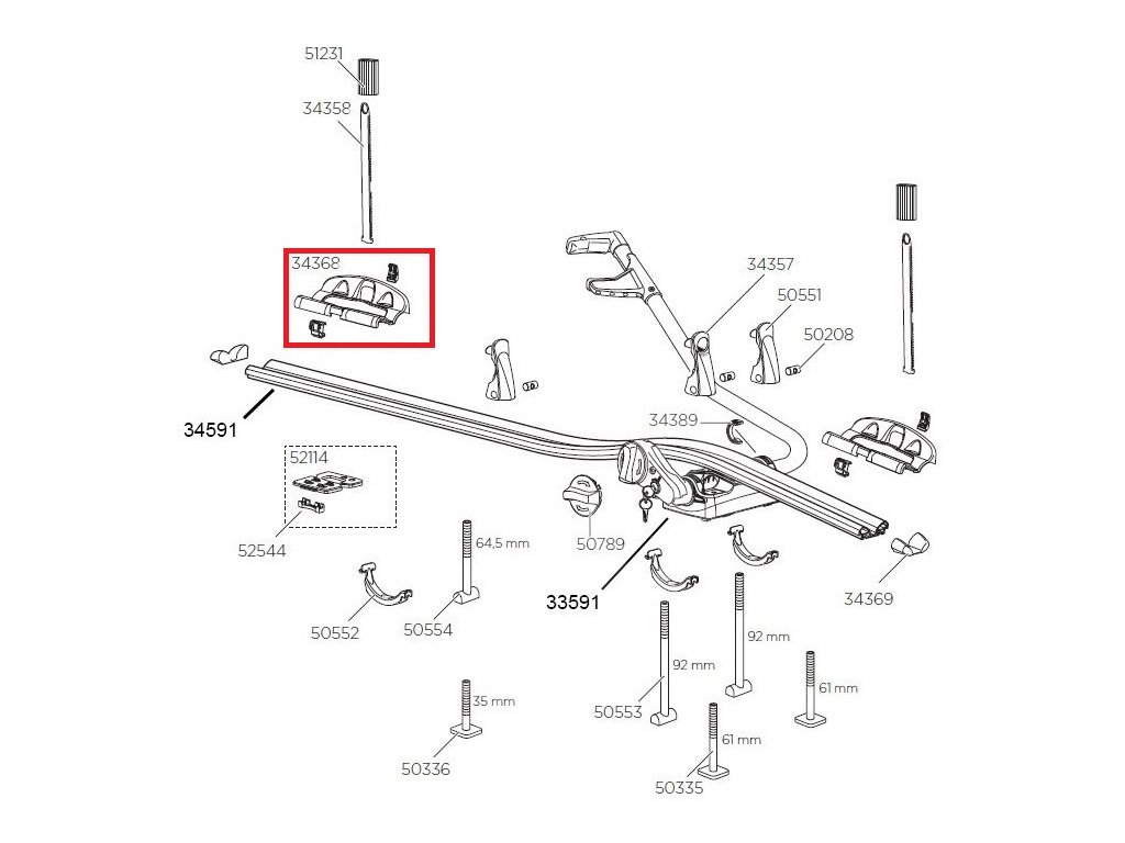 Náhradní díl - dosedací plast pro nosič kol Thule 591 včetně spon.
