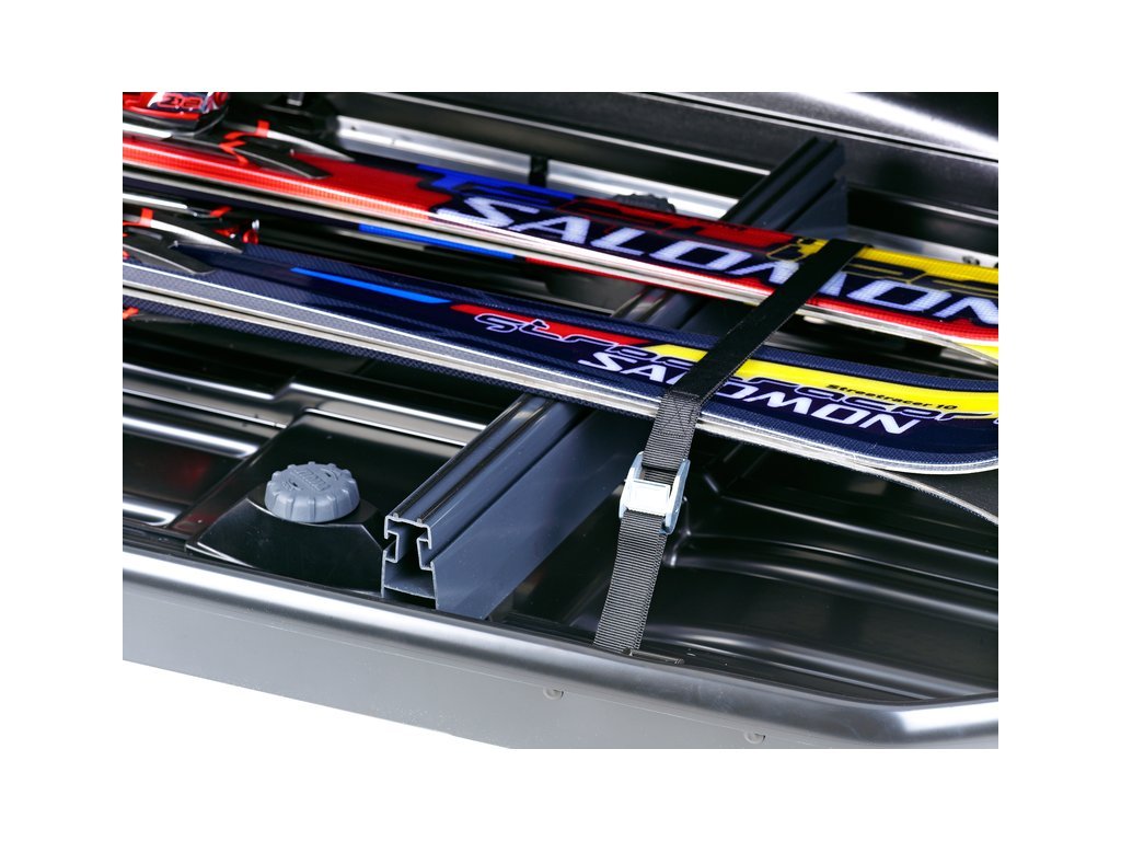 Držák lyží Thule 6949 slouží k bezpečnému upevnění lyží do střešního boxu. Lyže tak přepravujete ještě bezpečněji a stylově.