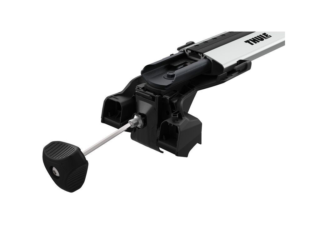Ergonomický klíč s omezovačem momentu dotahu zaručuje optimální a bezpečné upnutí patky na podélníky auta. Patka Thule Edge Flush Rail je uzamykatelná systémem Thule One Key, který je součástí balení.