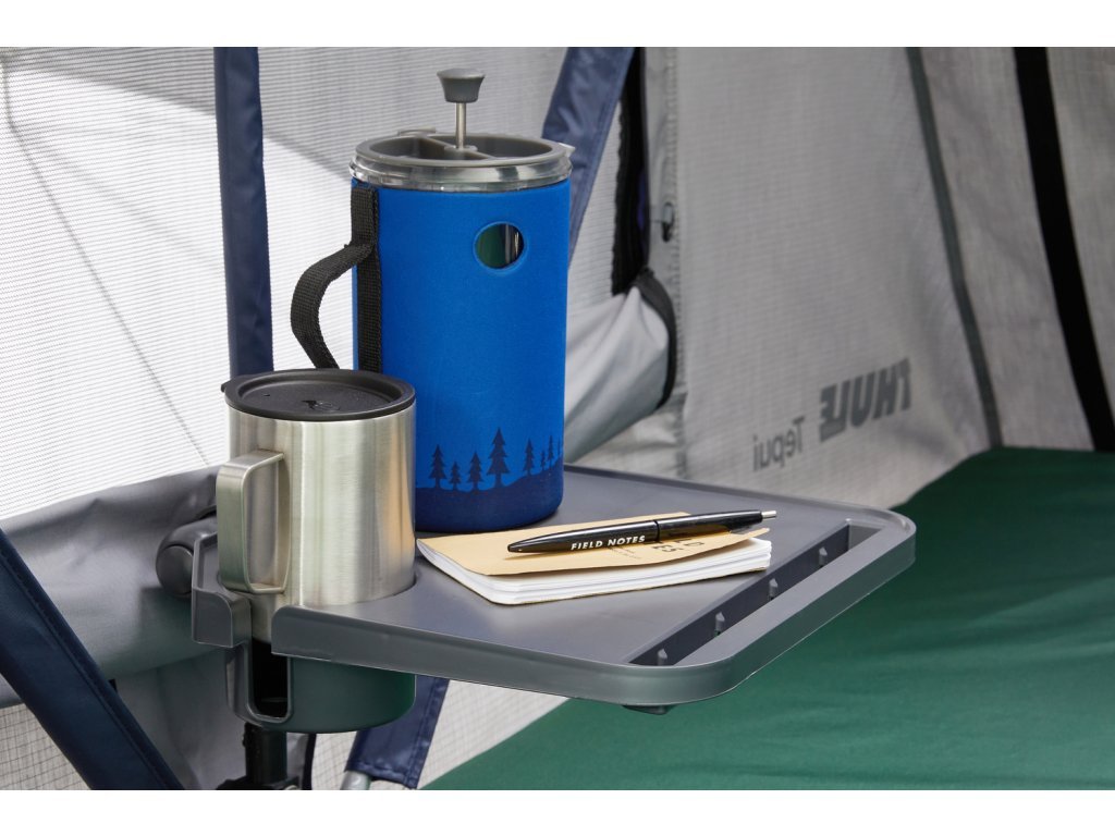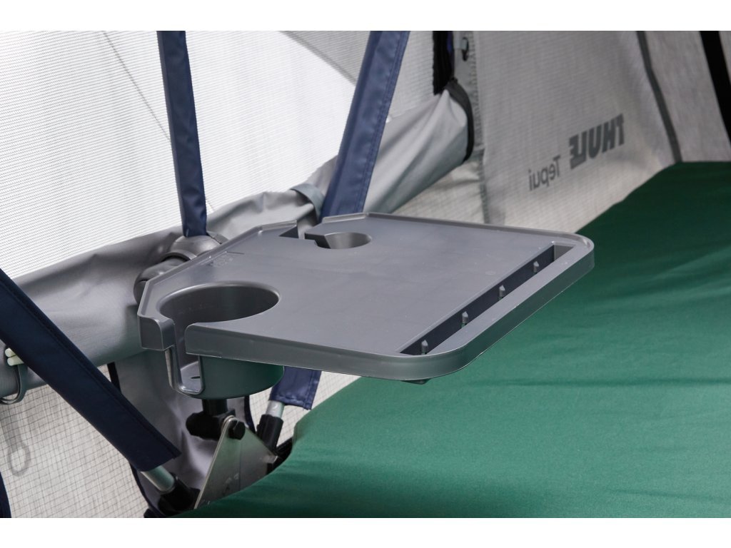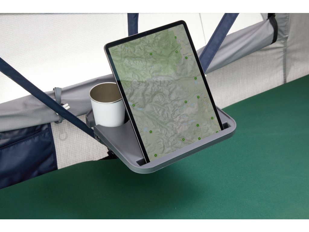 Stůl pro auto-stany. Rychlá a snadná montáž na konstrukční tyče uvnitř stanu. Integrovaný držák na nápoje. Stojan pro tablet nebo telefon. Skladem na pobočce v Košicích, dodání do 4 dnů.
