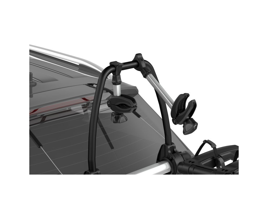 Jízdní kola se dají snadno připevnit díky odnímatelným držákům na jízdní kolo s uzamykatelnými tlačítky omezovače kroutícího momentu Thule AcuTight, které zacvaknou, když se dosáhne optimální kroutící moment.
