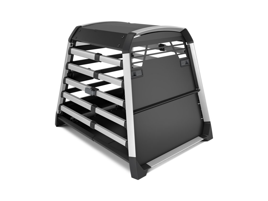 Bezpečná, spolehlivá a snadno použitelná přepravka pro psy. S bezhlučným designem. Rozměry 89-94 x 70 x 73 cm.