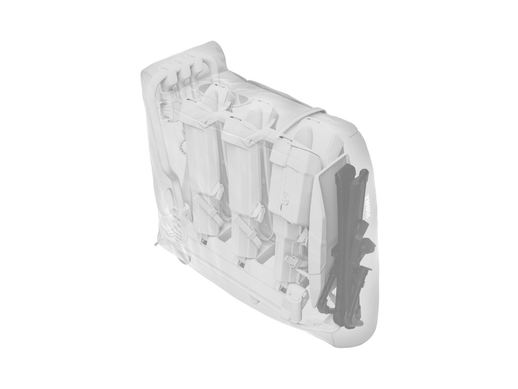 Vak pro uskladnění nosiče na 3 kola. Usnadňuje uložení a přepravu.