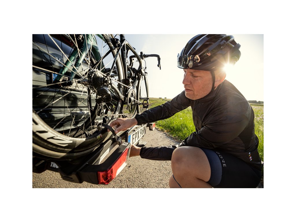 - Výklopný mechanizmus nosiče Thule EasyFold XT 2 se ovládá pomocí inteligentního nožního pedálu, to Vám ponechá volné ruce na přidržení jízdních kol během vyklápění. Dostanete se tak bezproblémově k zavazadlovému prostoru i s jízdními koly namontovanými na nosiči.