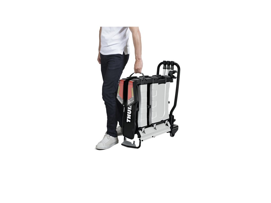 Thule EasyFold XT F 966 pro 3 kola je bezkonkurenčně nejmenší nosič ve složeném stavu, protože má po složení úžasných 83 x 123 x 86 cm.