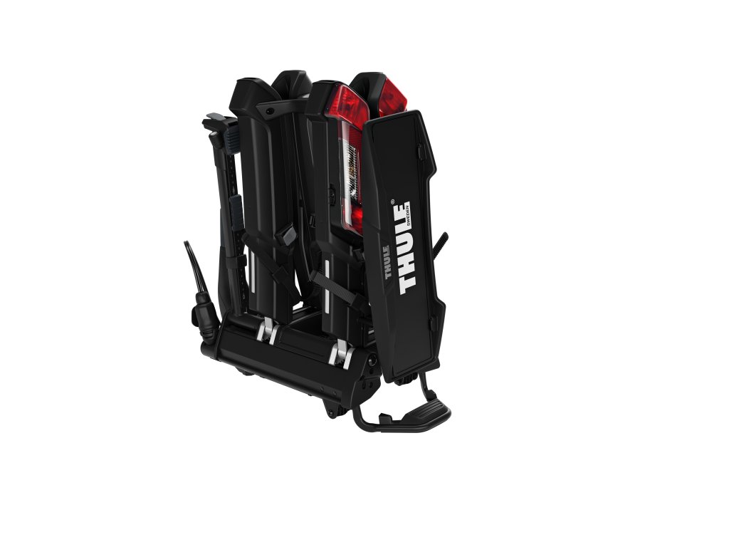 V případě, že na nosiči nejsou jízdní kola naložená, ramena lze sklopit do vodorovné polohy, aby byl zavazadlový prostor vozidla přístupný i bez odklápění nosiče. Pokud nosič Thule Epos nepoužíváte, můžete jej kompletně složit pro snadnější přepravu nebo skladování.