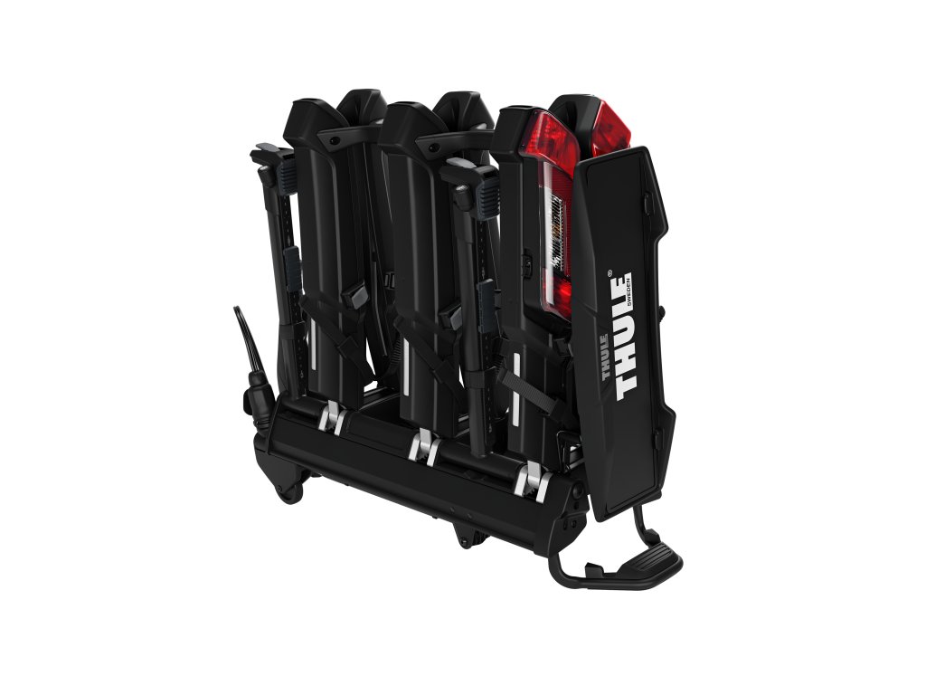 V případě, že na nosiči nejsou jízdní kola naložená, ramena lze sklopit do vodorovné polohy, aby byl zavazadlový prostor vozidla přístupný i bez odklápění nosiče. Pokud nosič Thule Epos nepoužíváte, můžete jej kompletně složit pro snadnější přepravu nebo skladování.