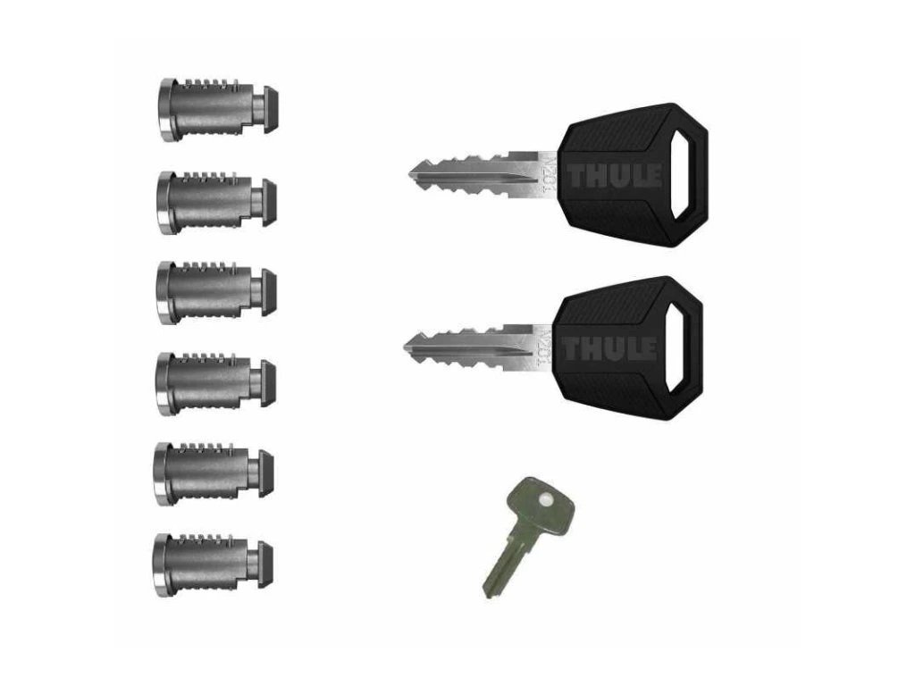 Sjednocovací sada zámků Thule. Možnost, jak používat jeden klíč na více produktech Thule.