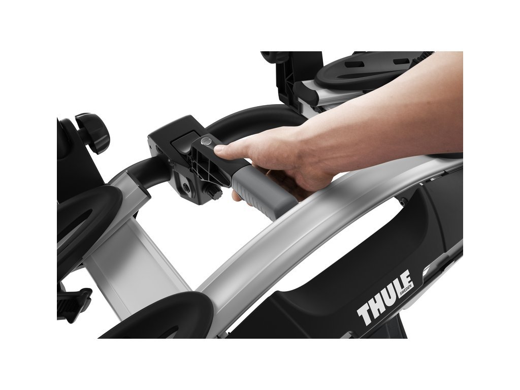 THULE VeloCompact 924 váží 14,2kg, což činí montáž a demontáž nosiče velmi jednoduchou a bezproblémovou. Ke snadné montáži přispívá i nastavitelné spojení ovládané jednou rukou, které vyžaduje použití nízké síly k upevnění nosiče.