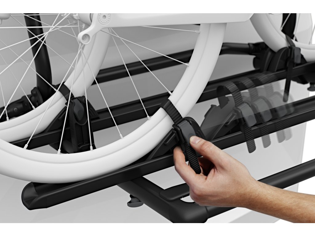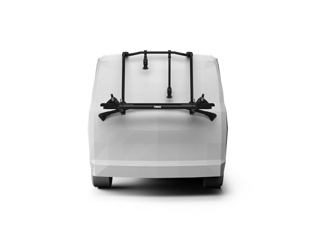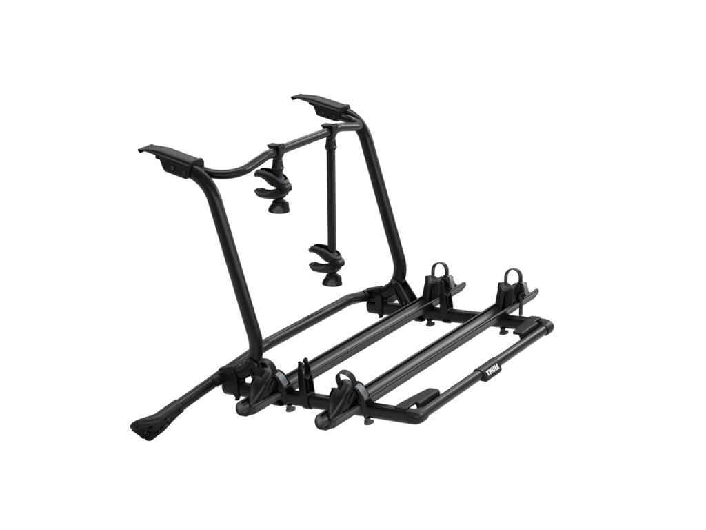 Cyklonosič na dvě kola, speciálně navržený pro vozy Volkswagen Transporter T6. Možnost rozšířit až o další dvě pozice. Černé provedení.