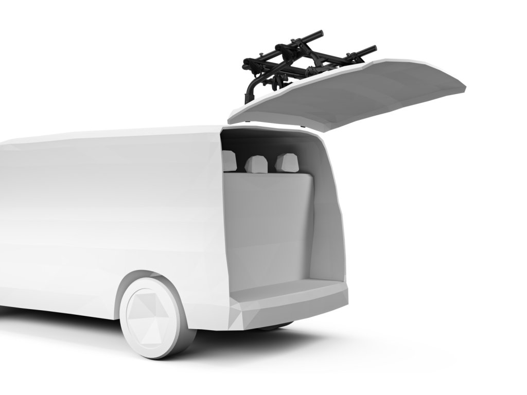Inovativní nosič kol Thule WanderWay určený pro vyklápěcí dveře minivanu VW T6.