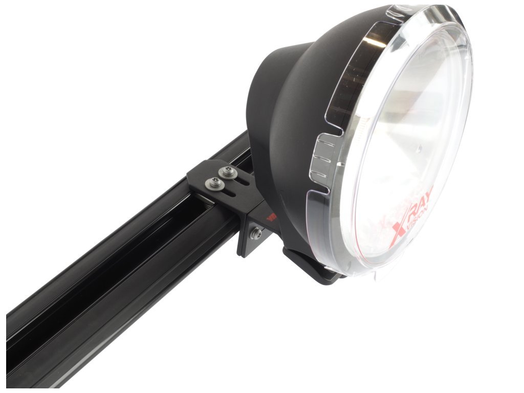 Ocelové konzole určené pro montáž přídavných světel na střešní nosiče nebo platformu. Montáž do T-drážky. Set 2 kusů.