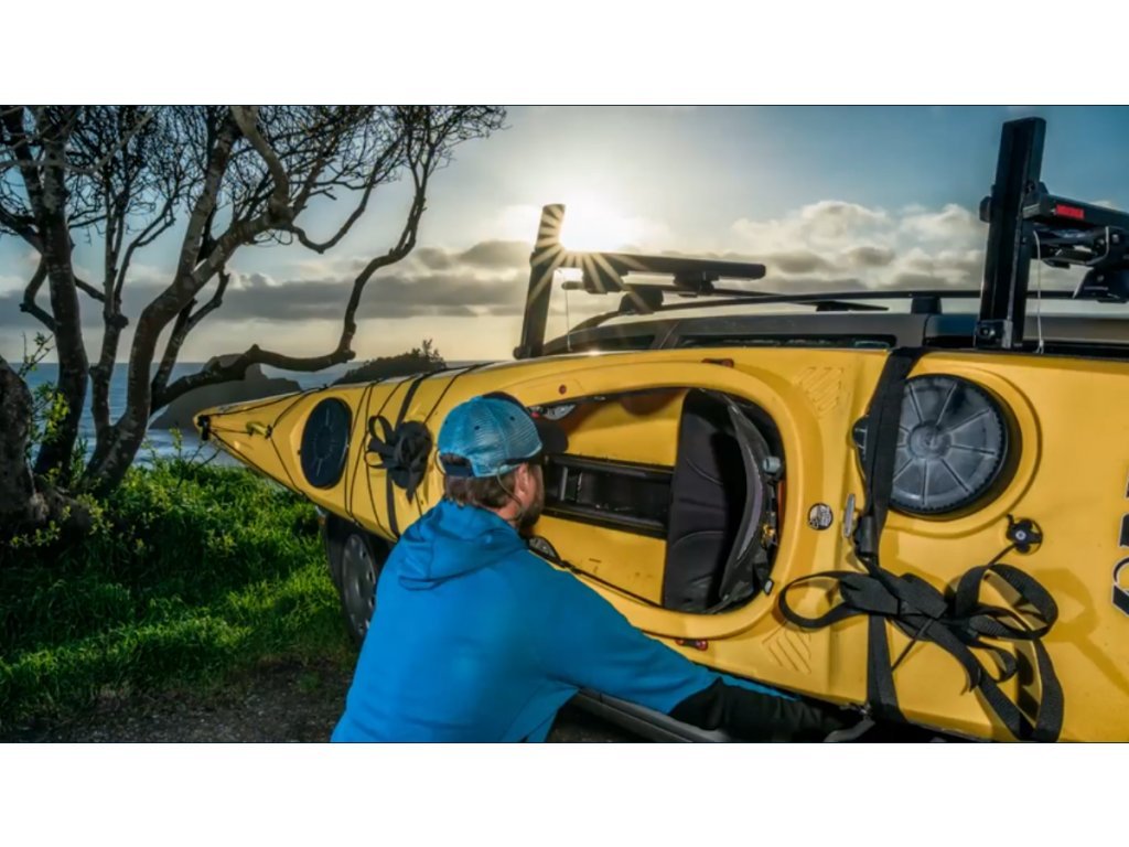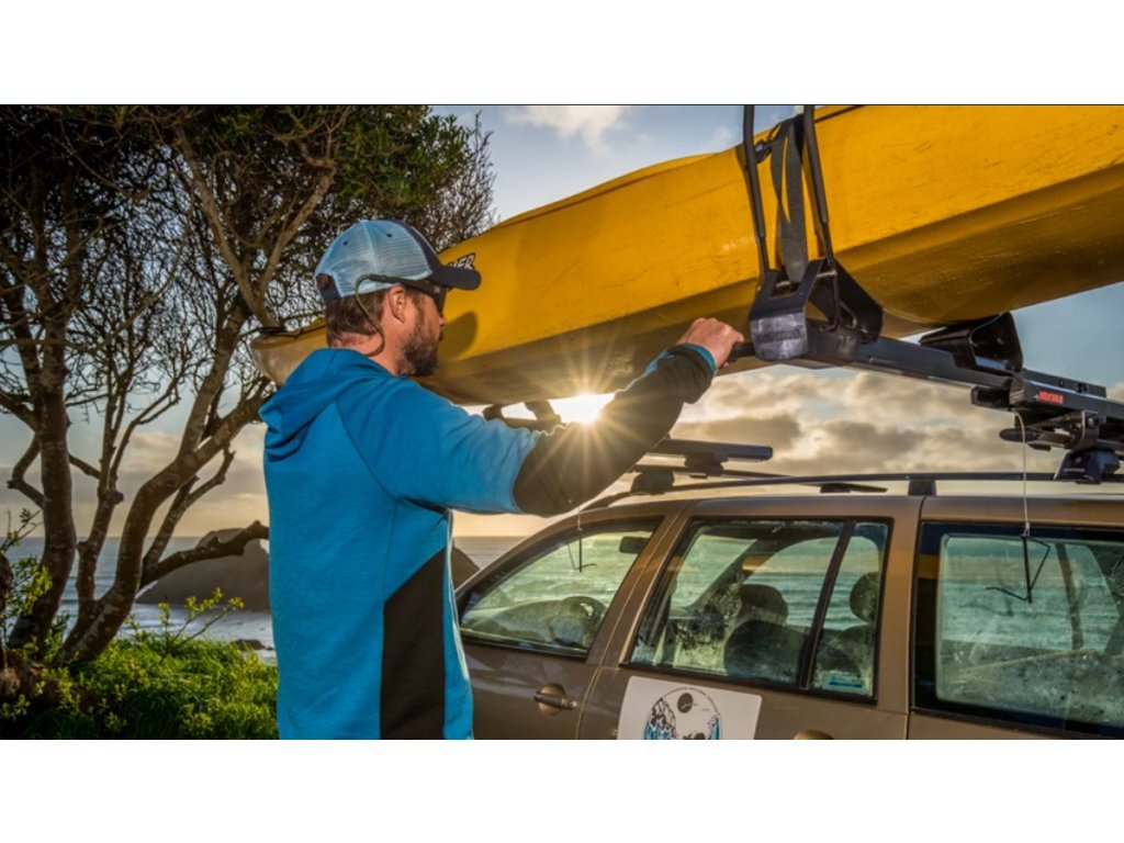 Yakima ShowDown, nosič kajaků s originálním posuvným a vyklápěcím mechanismem, díky kterému budete vykládat kajak či surfovací prkno na úrovni Vašeho pasu.