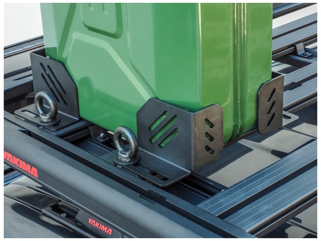 Ocelové rohové zábrany. Slouží pro snadný převoz různých beden či jiného příslušenství. Součástí jsou také oka na popruhy pro zajištění nákladu. Montáž do T-drážky.