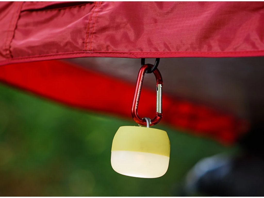 SkyHooks - závěsná karabina na silném nylonovém řemínku určená k zavěšení všeho, co potřebujete, např. bundy, mokré ručníky, tašky, světlo.