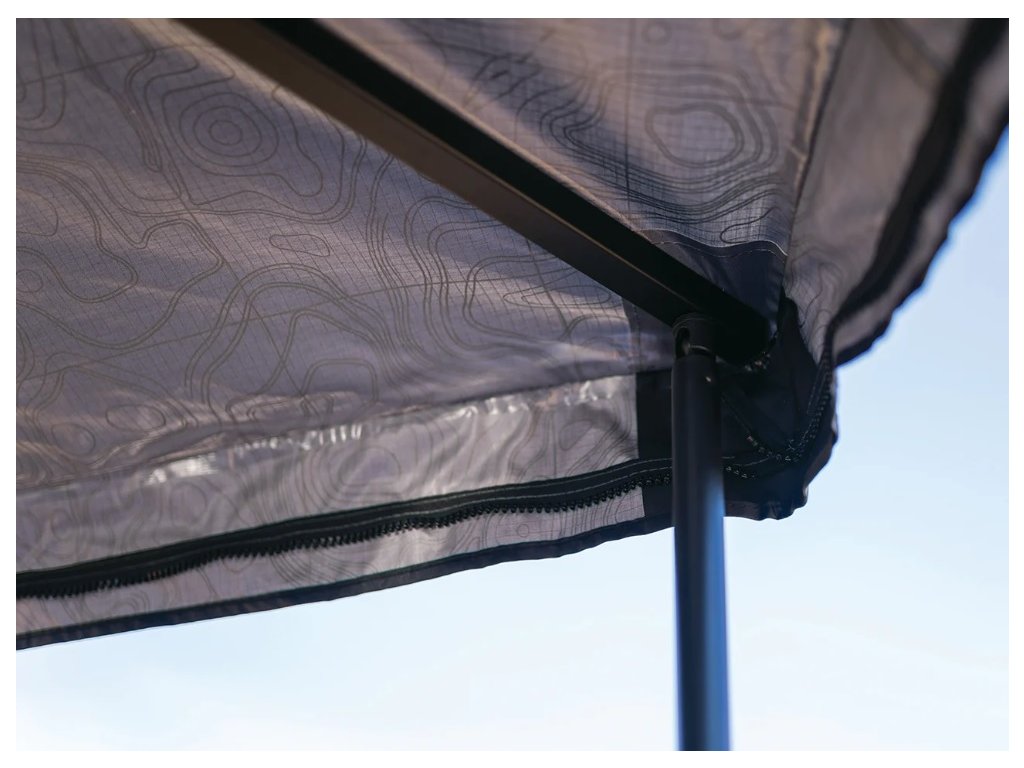 Markýza je vyrobena z pevné polybavlněné tkaniny 420D s PU zátěrem, který je odolný vůči větru, dešti a UV záření. Silná podpůrná ramena usnadňují její rozložení a použití bez použití podpěrných tyčí. Pevný vinylový cestovní obal dostatečně chrání markýzu při převozu a uskladnění.