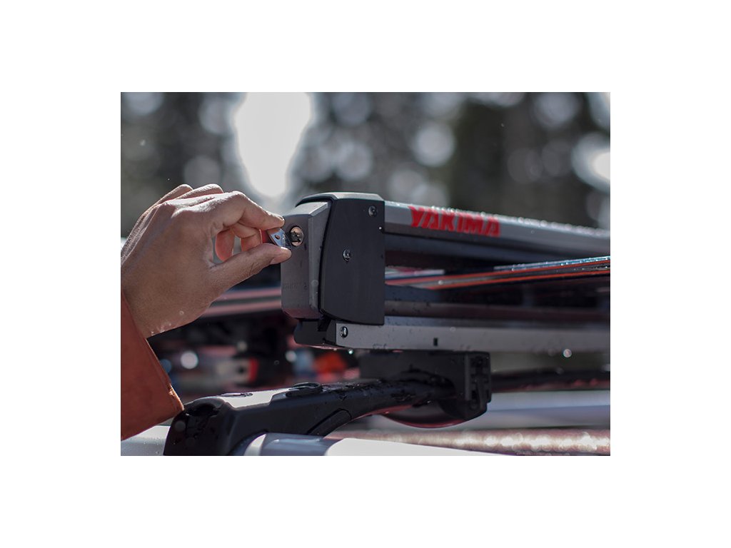 Lyže či snowboardy jsou uzamykatelné klíčem a samotný nosič se o střešní nosiče (příčníky) zajistí mechanicky speciálním imbusovým klíčem.