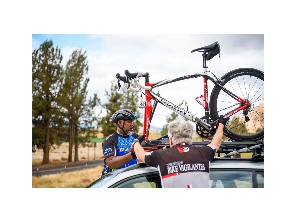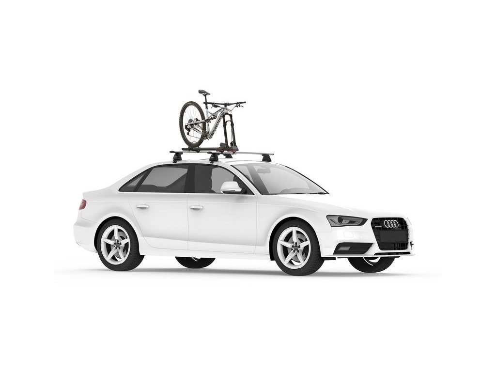 Nosič na auto namontujete velmi rychle. Je kompatibilní se všemi typy střešních nosičů. Nosič a také kolo zabezpečíte proti krádeži uzamčením (zámky jsou součástí balení).