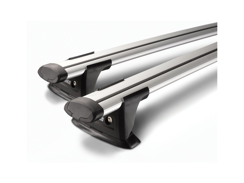 Nehlučné střešní nosiče s permanentně krytou T-drážkou, zámky a velkou přepravní kapacitou. Délka tyčí 110 cm, stříbrné provedení. Pro instalaci je zapotřebí montážní kit Yakima (dle typu auta).